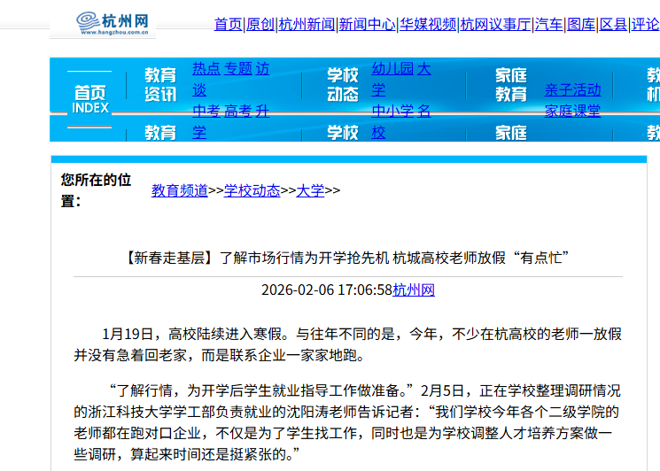 1月19日,高校陆续进入寒假。与往年不同的是,今年,不少在杭高校的老师一放假并没有急着回老家,而是联系企业一家家地跑。“了解行情,为开学后学生就业指导工作做准备。”2月5日,正在学校整理调研情况的浙江科...