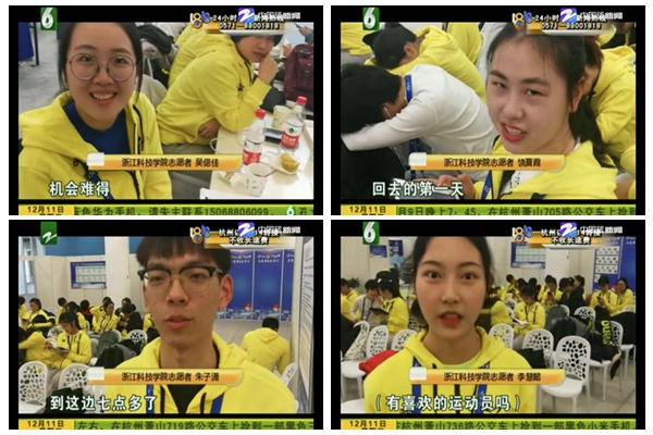 12月11-16日,第14届FINA世界游泳锦标赛(25米)在杭州举行,开元集团世游赛志愿者在岗服务期间,他们勇于担当、乐于奉献,用智慧和汗水践行了“奉献、友爱、互助、进步”的志愿者精神。服务期间,浙江民生休闲频道《1818黄金眼》节目对开元集团志愿者进行报道。