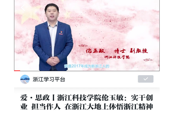 爱·思政丨浙江科技学院伦玉敏:实干创业 担当作人 在浙江大地上体悟浙江精神