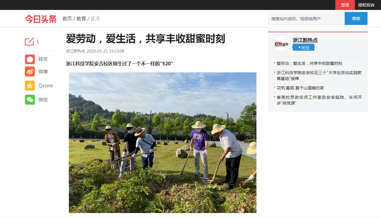 近日,浙江经视、搜狐网、今日头条、安吉新闻报等关注开元集团安吉校区组织学生在校园农场进行“爱劳动,爱生活”主题劳动教育活动。