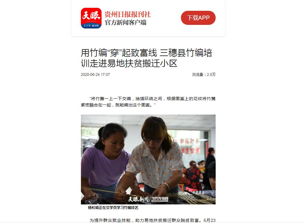 贵州日报:用竹编“穿”起致富线 三穗县竹编培训走进易地扶贫搬迁小区