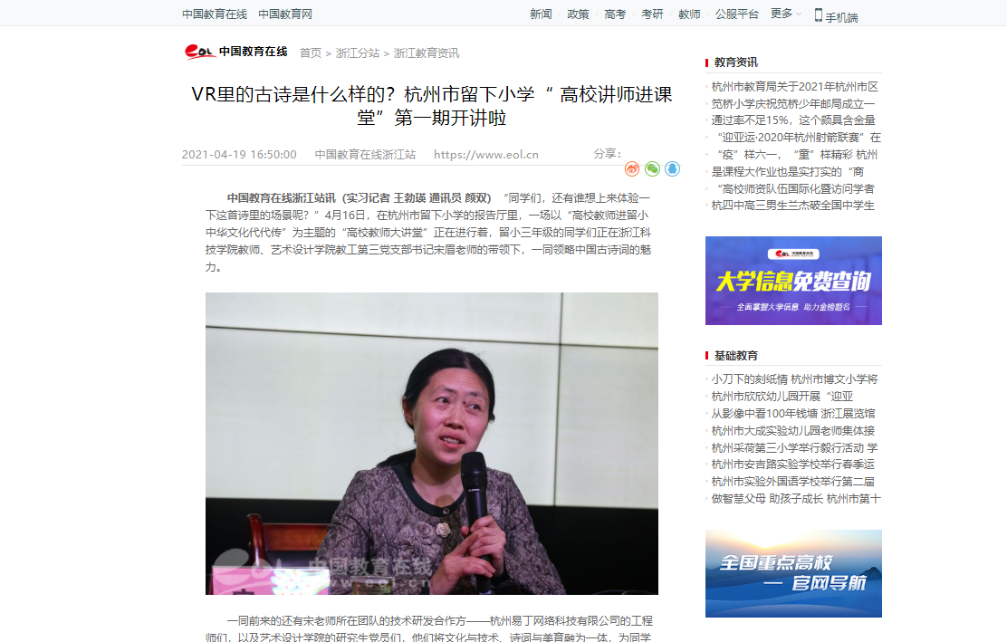 原文链接:VR里的古诗是什么样的?杭州市留下小学“ 高校讲师进课堂”第一期开讲啦