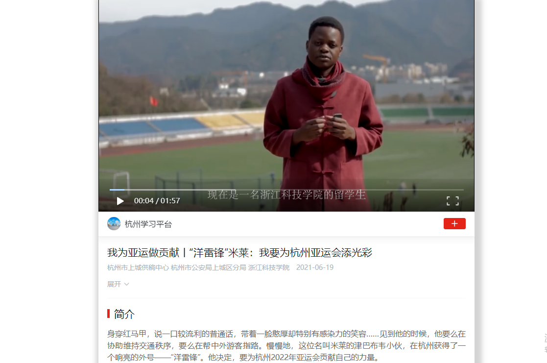 身穿红马甲,说一口较流利的普通话,带着一脸憨厚却特别有感染力的笑容……见到他的时候,他要么在协助维持交通秩序,要么在帮中外游客指路。慢慢地,这位名叫米莱的津巴布韦小伙,在杭州获得了一个响亮的外号——“洋雷锋”。他决定,要为杭州2022年亚运会贡献自己的力量。