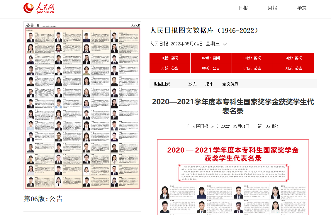 原文链接:2020—2021学年度本专科生国家奖学金获奖学生代表名录