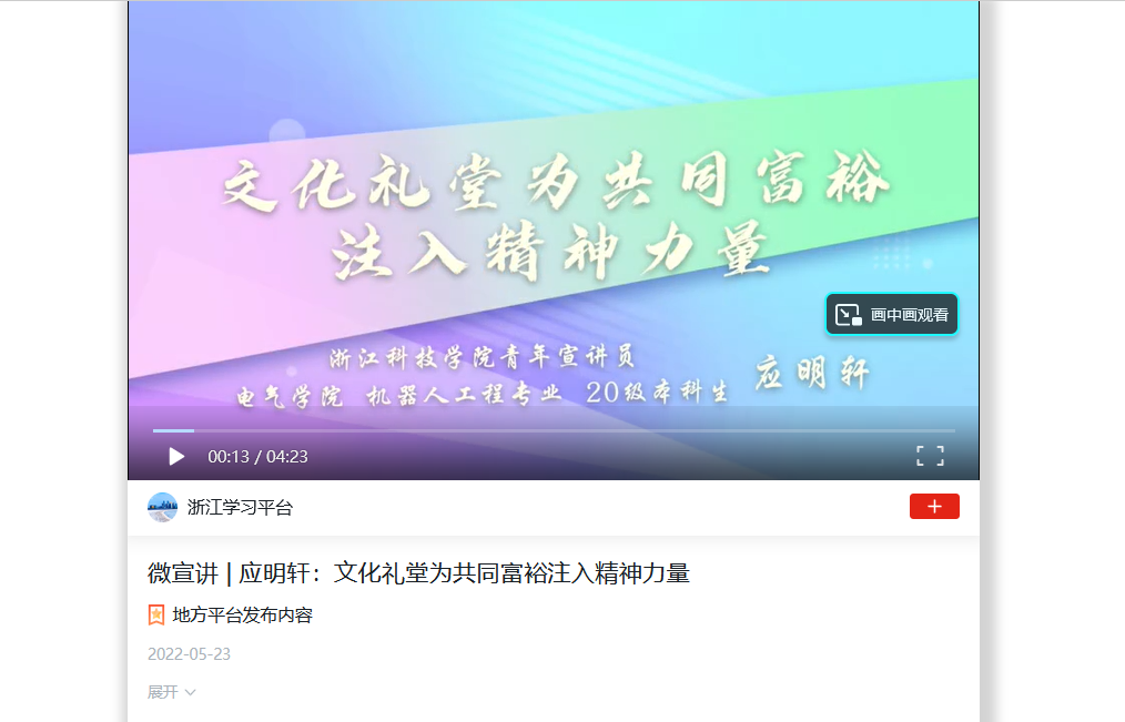 视频链接:微宣讲 | 应明轩:文化礼堂为共同富裕注入精神力量