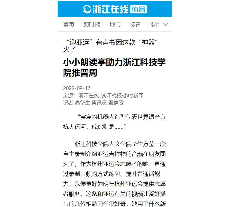 浙江在线客户端:小小朗读亭助力浙江科技学院推普周