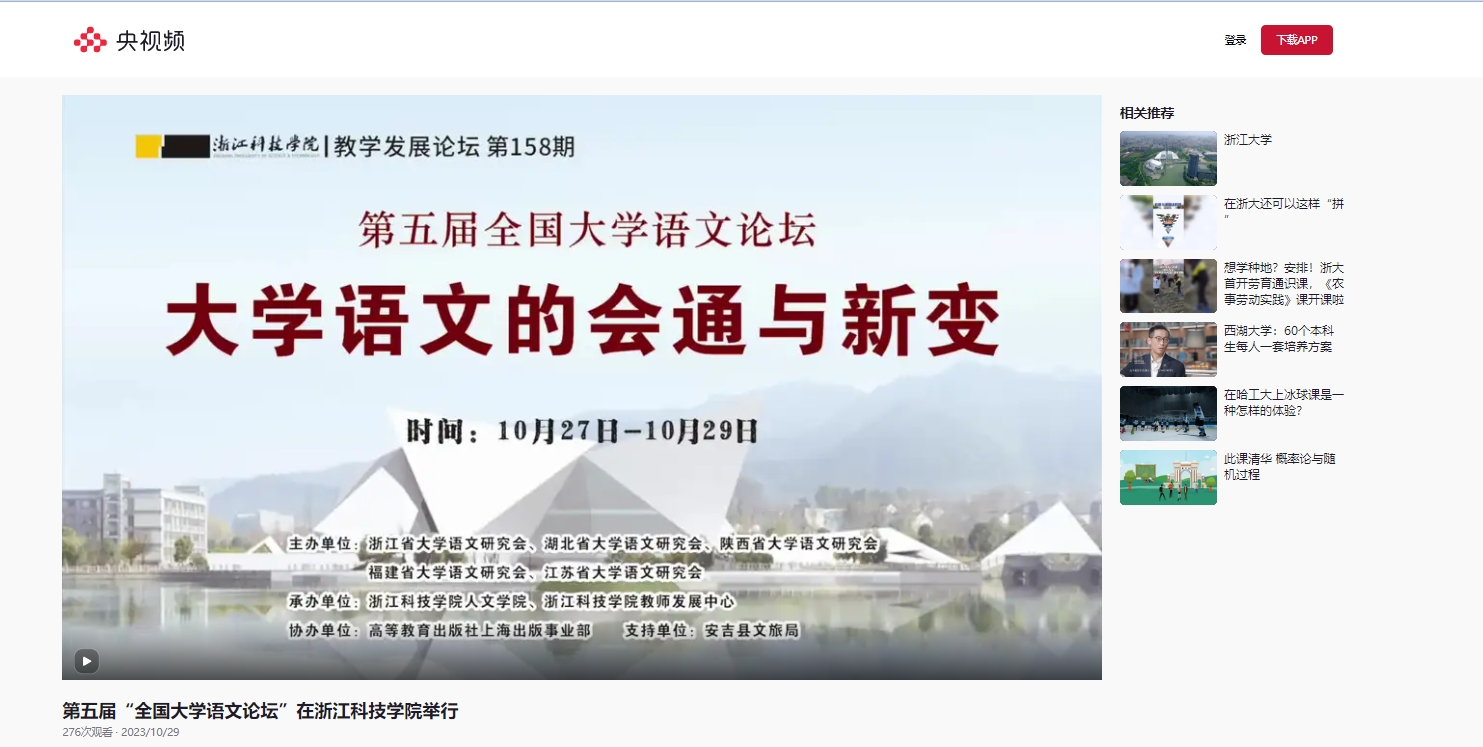 央视频客户端:第五届全国大学语文论坛在杭州开幕