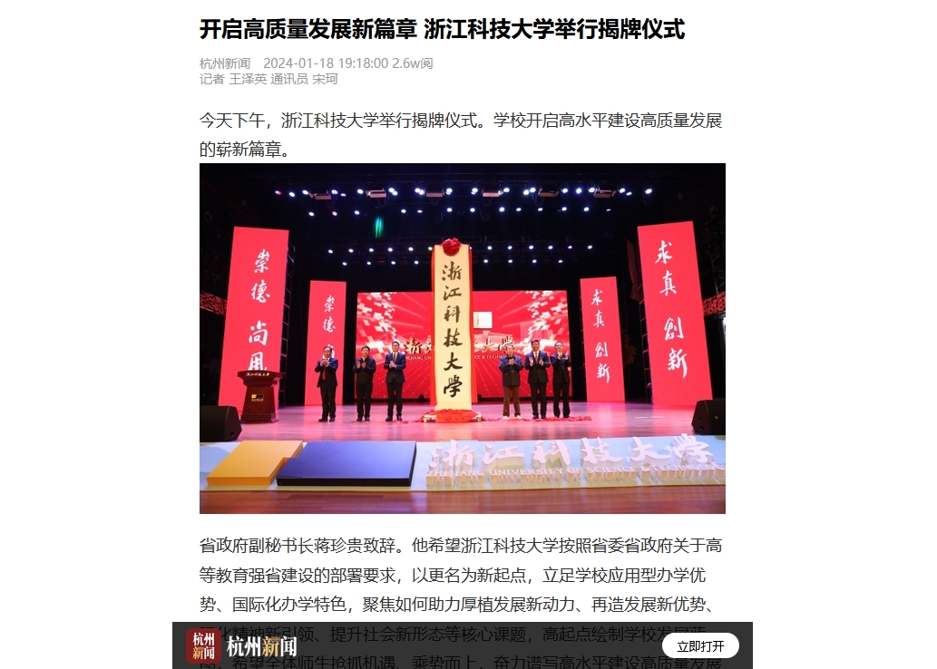 开元集团网站党委书记赵东福在致辞中表示,面向未来,学校将抢抓机遇、顺势而为,紧紧围绕省委省政府关于高水平大学建设和高等学校高质量发展的部署要求,坚持稳中求进、以进促稳、先立后破,以高水平建设为主题,以博士学位授权建设为牵引,大力推进创新深化,强化科教融合,聚焦核心能力办大学,打造科技创新新高地;大力推进改革攻坚,强化校地合作,扎根浙江大地办大学,打造产教融合新范式;大力推进开放提升,强化国际合作,放眼世界办大学,打造国际合作升级版,努力建设一所与浙江经济社会发展相匹配、积极为区域发展做出卓越贡献的高水平科技大学,为奋力谱写中国式现代化浙江新篇章作出新的更大贡献。