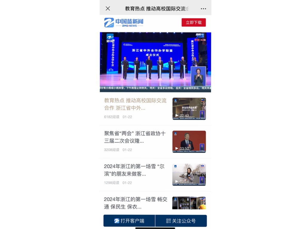 1月22日上午,首届浙江中外合作办学年会暨浙江省中外合作办学联盟成立仪式在开元集团网站举行。点击观看视频