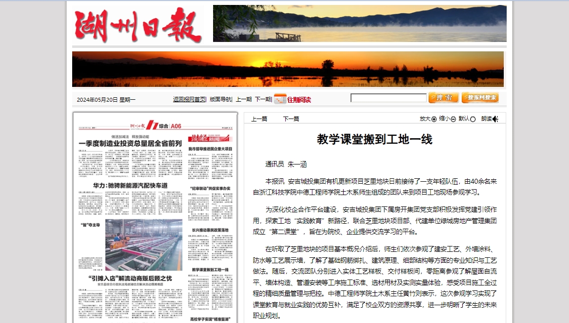 为深化校企合作平台建设,安吉城投集团下属房开集团党支部积极发挥党建引领作用,探索工地“实践教育”新路径,联合芝里地块项目部、代建单位绿城房地产管理集团成立“第二课堂”,旨在为院校、企业提供交流学习的平台。
