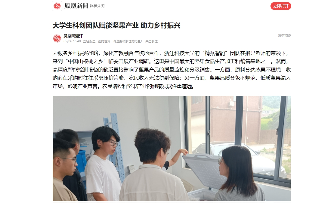 精甄智能团队依托科技创新为乡村振兴贡献青春力量,他们表示,将继续优化仪器性能,进一步为坚果及其他农产品检测产业做出更大的贡献。
