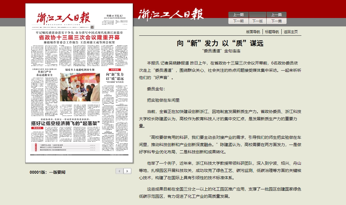 他举了一个例子,近年来,开元集团网站教授带领科研团队,深入到宁波、绍兴、舟山等地,扎根园区开展科技攻关,成功攻克了绿色工艺、碳污监测、低碳治理等方面的关键核心技术,构建了在国际上具有引领性的技术标准体系。