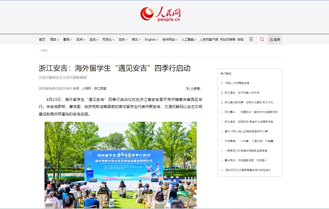 人民网:浙江安吉:海外留学生“遇见安吉”四季行启动