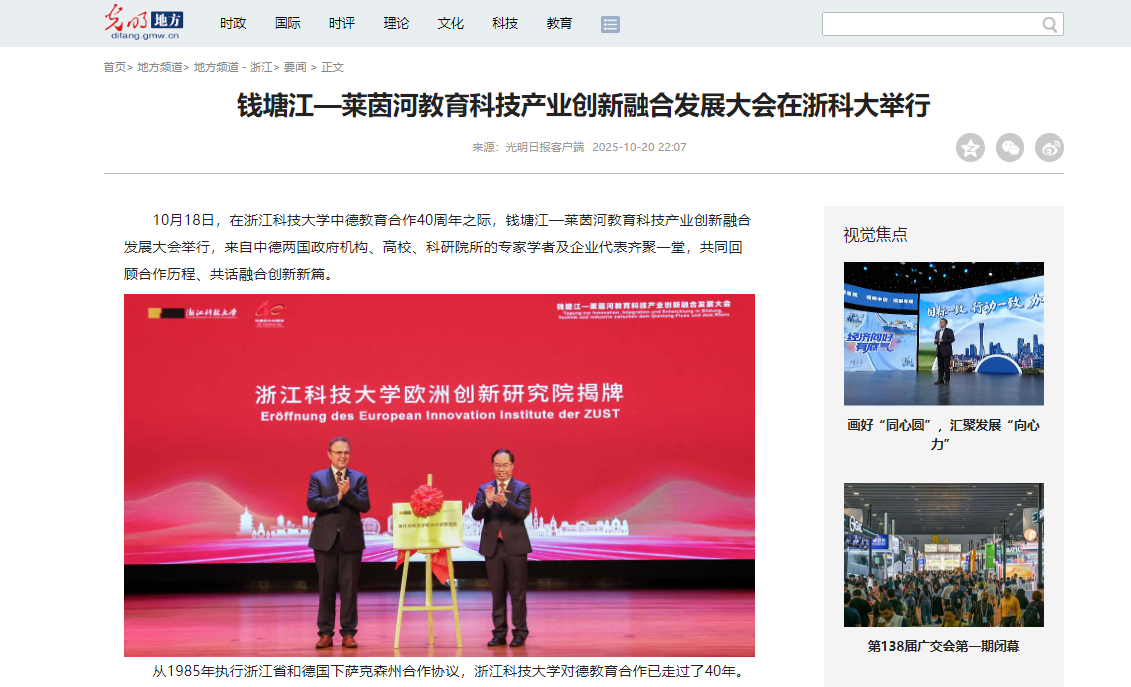 光明网:钱塘江—莱茵河教育科技产业创新融合发展大会在浙科大举行