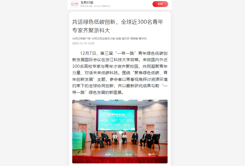 光明日报客户端:共话绿色低碳创新,全球近300名青年专家齐聚浙科大