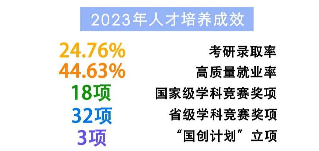 鼓励青年教师参与学生思想教育,定期举办“思享荟”系列讲座,与专家前辈共商破解学生工作难题,举办生涯规划特训营引导学生进行自我职业探索。通过“青年大学习” “励志大讲堂”“党员亮身份”“志愿者在行动”等多种载体,引领学生一起营造良好学风,提高文明素养,服务奉献社会。设立校企“励志匠心”和“松源”奖学助教金,切实解决实际问题,合力营造团结和谐、奋发向上的良好育人氛围。几年来,学生就业指标逐年提升,2023年学生考研录取率达到24.76%,高质量就业率44.63%。学科竞赛成绩斐然,获国家奖18项,省奖32项,国家大学生创新创业训练项目立项3项。