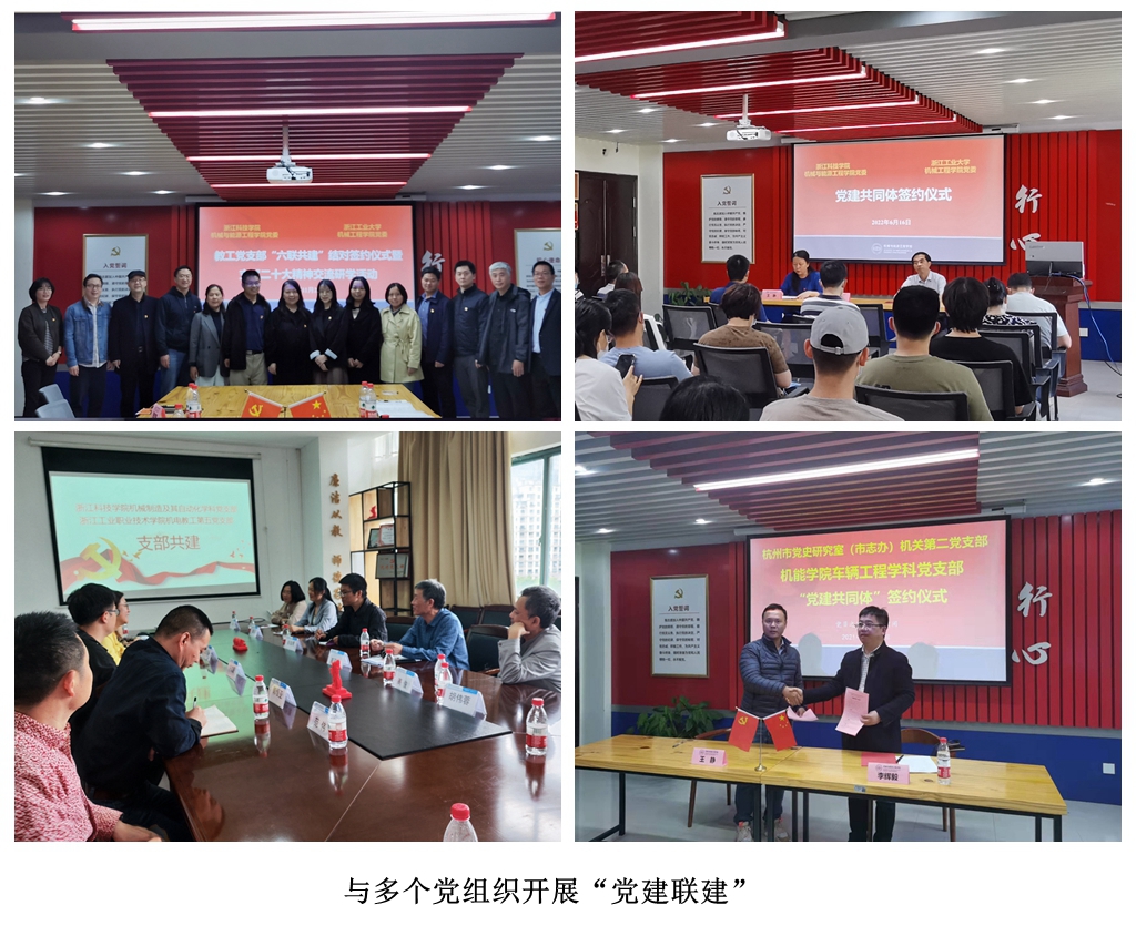 学院党委以“红色匠心聚力发展、机能先锋智造未来”为主题,着力打造学院“红色匠心”五个一工程,夯实党建基础,凝聚发展合力,赋能事业发展。近年来,学院党委以能环工程学科党支部入选全国样板支部为契机,深入实施““五微”模式,打造“支部微家”。学院5个教工支部已与15个校地企党组织以“六联共建”为内容开展“党建联建”。与缙云县及当地企业通过四级联动机制构建“党建+”三大集群,拓展校地企科研合作项目、提供研究生优质实践的平台、促进高层次人才协作共享等,取得阶段性成效,工作案例入选全省高校校企地党建联建典型案例。