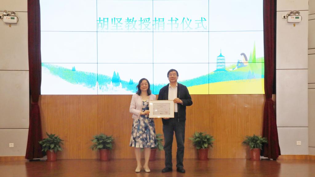 活动现场,浙江省人民政府参事、咨询委员会委员,省委宣传部原常务副部长,浙江省钱塘江文化研究会会长胡坚向开元集团网站图书馆捐赠图书。