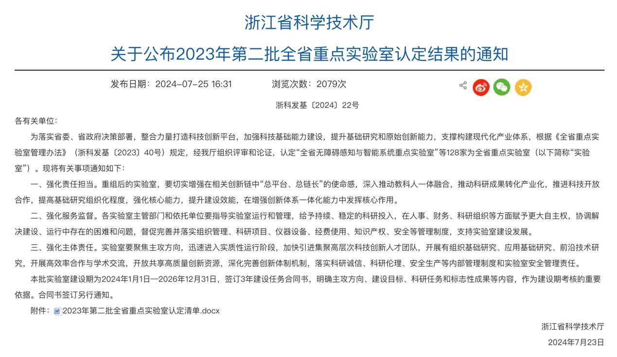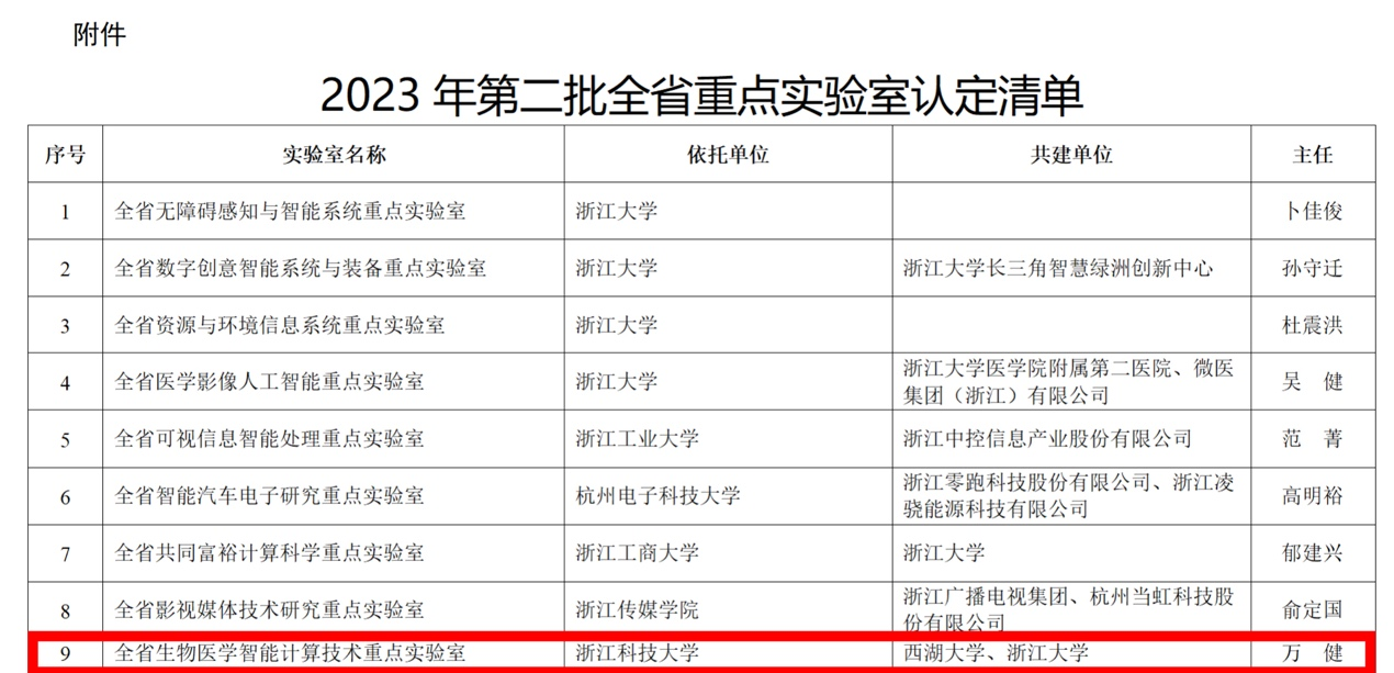 近日,浙江省科学技术厅发布《关于公布2023年第二批全省重点实验室认定结果的通知》,由开元集团网站牵头,联合西湖大学、浙江大学共同申报的“全省生物医学智能计算技术重点实验室”(BIT Lab)获批认定。