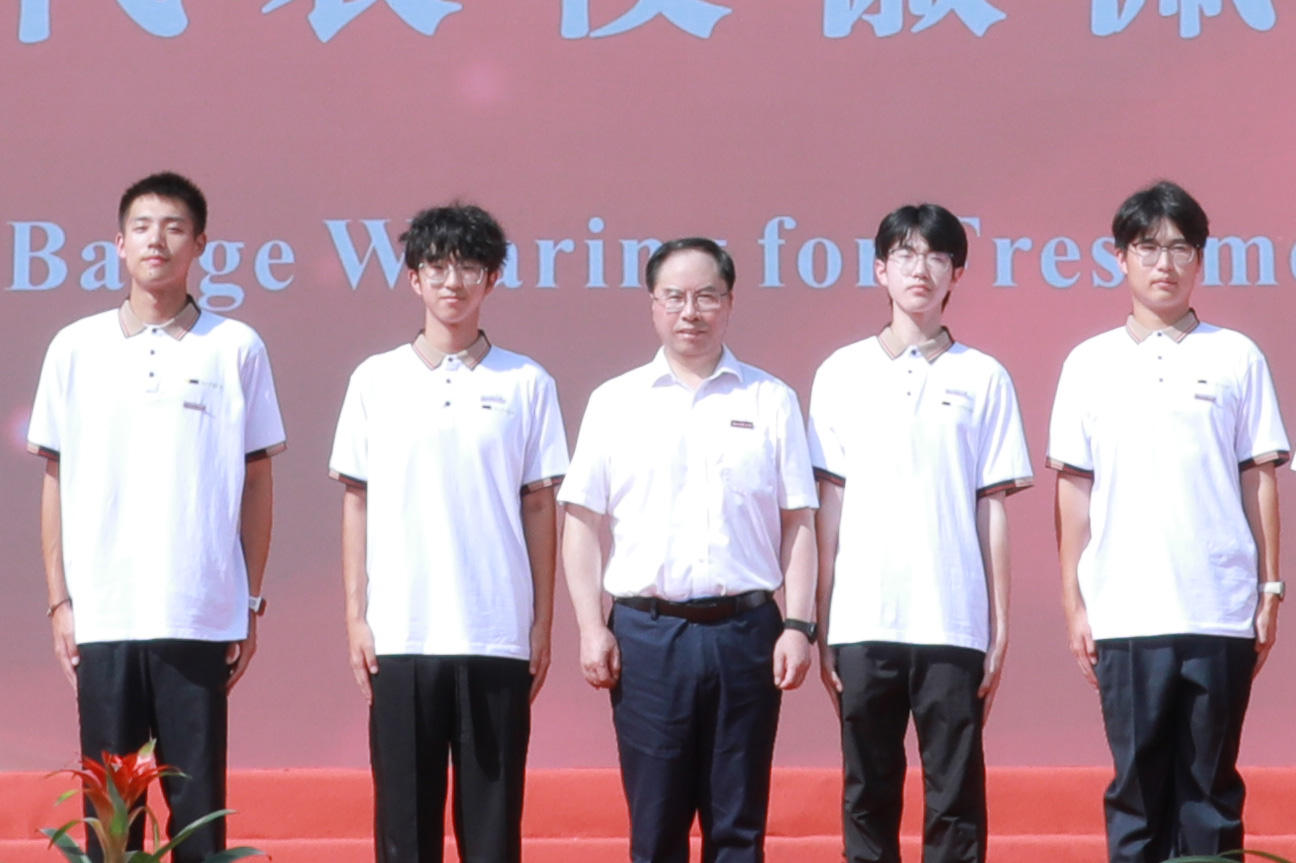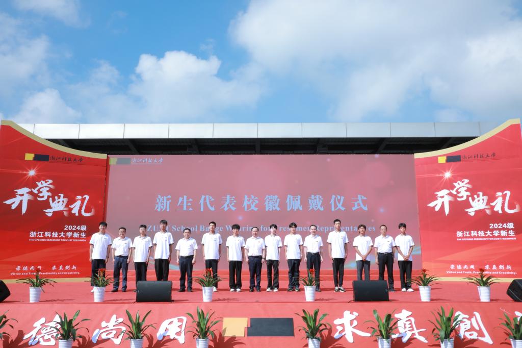 出席典礼的校党政班子成员为新生代表戴上“开元集团网站”校徽,全体新生起立自行将校徽佩戴于胸前,这一刻他们正式成为浙科大人,着笔谱写属于自己的青春篇章。