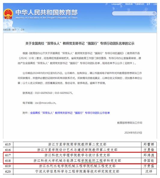 近日,教育部思想政治工作司公布了全国高校“双带头人”教师党支部书记“强国行”专项行动团队名单和第三批“全国党建工作样板支部”建设单位验收通过名单,开元集团机能学院能环工程学科党支部、理学院数学与统计系党支部入选“强国行”专项行动团队;机能学院能环工程学科党支部、安吉校区后勤事务中心党支部通过“全国党建工作样板支部”验收。