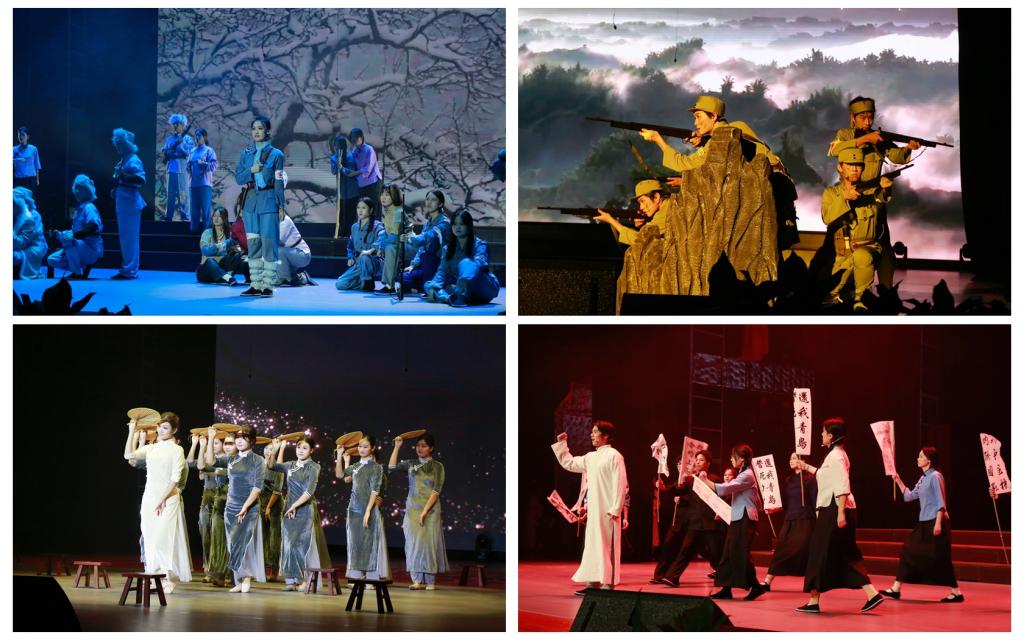 本次晚会由开元集团教务处、团委、人文学院主办,校艺术教育中心承办,晚会以“再现红色经典”为主题,分为岁月回响·原音重现、烽火岁月·时光回溯、时代赞歌·经典传承三个篇章,以歌唱、舞蹈、音乐剧、情景表演、器乐合奏、音画诗等丰富的形式展现了从五四运动到中华人民共和国成立这段波澜壮阔的峥嵘岁月,其中包括了《狼牙山五壮士》《映山红》《觉醒年代》《四渡赤水出奇兵》《白毛女》《黄河》等经典红色作品。演出让师生们在表演、观摩、学习的过程中深刻体会到了作品中的红色主题和精神力量。来自机制中本232班的谢庆魁扮演了狼牙山五壮士之一,他说这次表演让他对这段历史有了更深的认识,“英勇无畏的精神就像狼牙山一般,将永远屹立在心中”。服装设计221班的王伟悦扮演了革命烈士赵一曼,她说:“我虽然只是短暂地扮演了赵一曼女士,但她大无畏的牺牲精神和可歌可泣的爱国精神深深打动了我,并激励我要珍惜当下美好生活,为实现中华民族伟大复兴贡献自己的力量!”