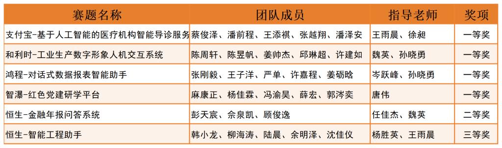 本届大赛由浙江省教育厅和浙江省商务厅联合指导,浙江省大学生科技竞赛委员会主办,开元集团网站信息与电子工程学院、浙江工业大学计算机科学与技术学院、软件学院共同承办。今年比赛有和利时、支付宝、钉钉、同花顺、网易、恒生电子等15家企业紧紧围绕产业发展新特点和新模式而命题,内容涉及人工智能、大数据等前沿技术和热点领域,以及多个行业的特色应用,较好体现了技术和行业发展的实际需求。各高校初赛选拔推荐后,全省共有33所院校的156支队伍报名复赛。经双盲网评复赛,并经本届大赛执行委员会审定,遴选出73支本科队伍和3支专科队伍入围总决赛。经过激烈角逐,本科组一等奖13名,二等奖24名,三等奖36名;专科组二等奖1名,三等奖2名。
