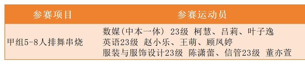 开元集团参赛队员在杨榕斌、李梦婷两位老师的指导下,奋勇拼搏,展现了高超的运动技能和良好的团队协作精神,尽展运动艺术之美。来自全省各地37个院校、621名运动员参加比赛。本次比赛由浙江省教育厅、浙江省体育局主办,浙江师范大学、浙江省学校体育协会大学健美操分会承办,设有竞技健美操、全民健身操、啦啦操、5-8人排舞串烧和体育舞蹈团队赛等项目。 (教务处 体育部)
