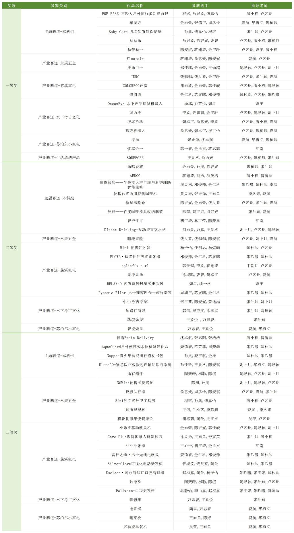 在浙江省第十六届大学生工业设计大赛中,工业设计系学生获得一等奖17项、二等奖19项、三等奖22项,总计获奖58项,成绩位居全省前列。浙江省大学生工业设计竞赛由浙江省教育厅、浙江省经济和信息化厅指导,浙江省大学生科技竞赛委员会等单位主办。本届竞赛设有“新移动·新生活”主题赛道和“生活清洁产品”“苏泊尔小家电”“永康五金”“月立杯慈溪家电”以及“水下考古文化”5个产业赛道。