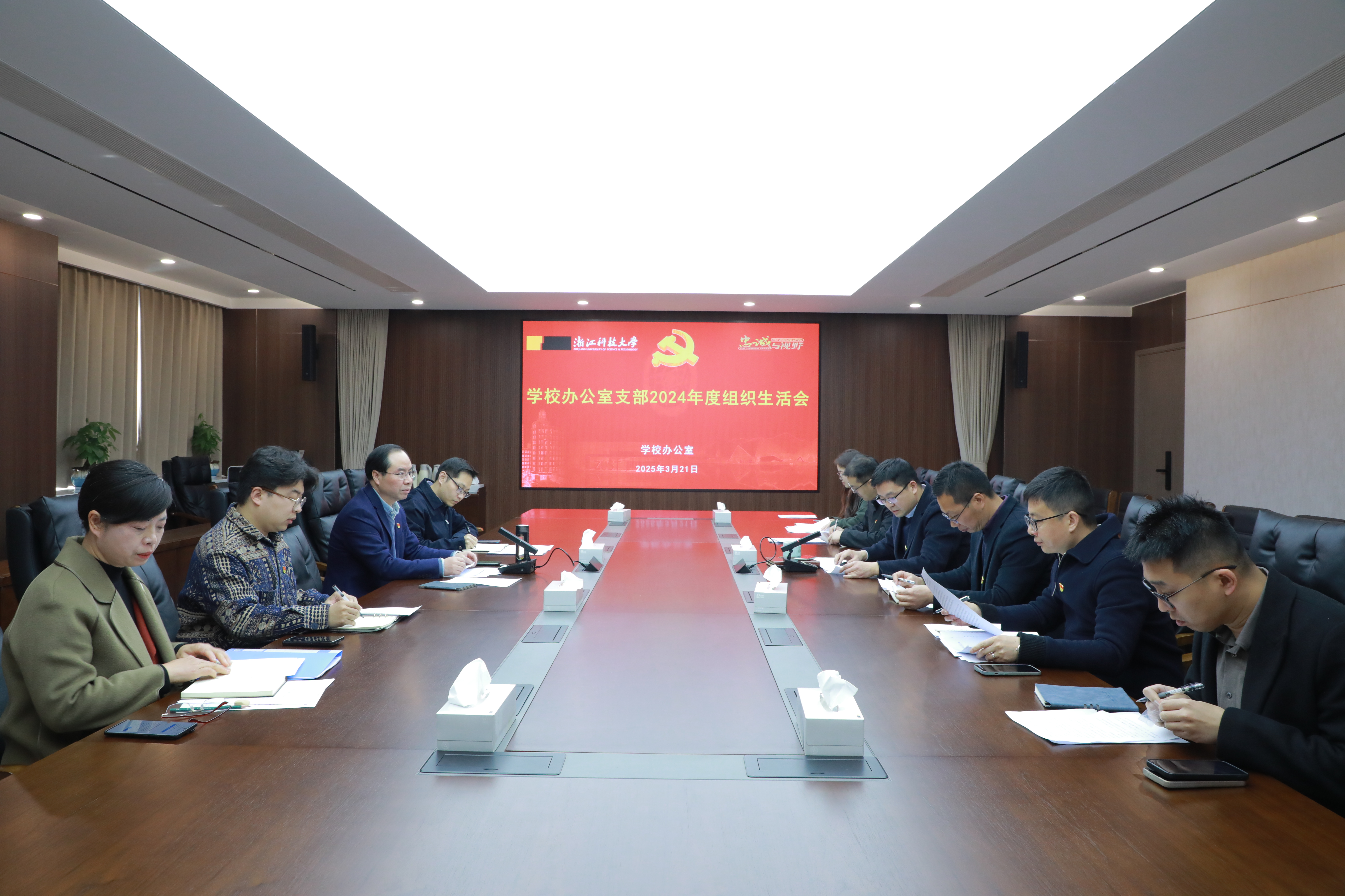 赵东福充分肯定了学校办公室支部2024年度工作,并从讲政治、讲党性,善担当、善作为,强作风、强宗旨三个方面勉励支部党员,继续坚持和发扬支部的优良传统,砥砺奋进。赵东福指出,从学院到大学到高水平大学建设,学校办公室还面临着诸多机遇和挑战,要深刻领悟习近平总书记对办公厅工作提出的“五个坚持”重要要求,遵循办学规律,把握时代脉搏,顺应学校高质量发展的新要求和人工智能等科技变革带来的深刻影响,讲政治、讲大局,大力弘扬“六干”精神,以极端负责的作风、无怨无悔的奉献精神和职业操守,扎实做好办公室工作。