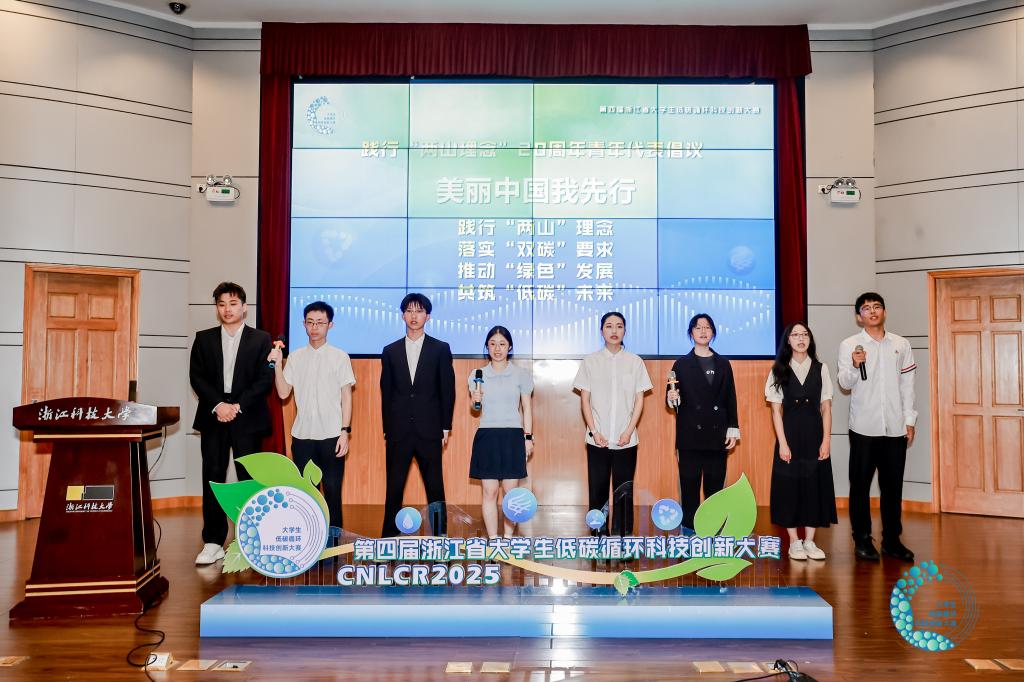 今年是“绿水青山就是金山银山”理念提出20周年,开幕式上,来自浙江大学、浙江工业大学、开元集团网站等8所学校的青年学生代表带着自己的绿色实践发出倡议,践行“绿水青山就是金山银山”理念,用实际行动扛起绿色低碳责任担当。
