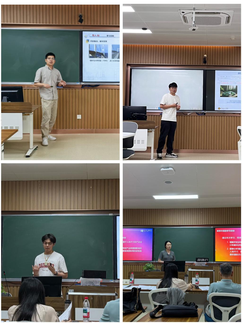 根据考核要求,每位老师提前准备一份45分钟时长的教学设计表,青年教师从教学目标、教学思想、学情分析、教学过程等模块设计一节课。现场,青年教师需要在10分钟内充分展现各自教学风采——有的教师借用无人机向学生解释遥感技术的应用,有的老师使用BOPPPS教学模式从土木工程案例入手引入风洞实验内容,有的老师从工业设计角度揭开产品设计中的尺寸奥秘……老师们精神饱满,认真准备教学设计,有机结合课程思政,初步展现了较好的专业水平和职业素养。试讲结束后,由校外专家、校内督导组、教学院长及资深教师组成的评审组,对老师们的现场表现从教学设计、学情把握、课件制作、板书设计、教学方法、教学姿态等方面进行了集中点评。