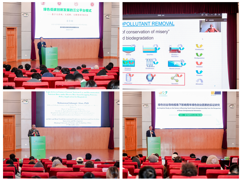 本届会议由中国循环经济协会、浙江省大学生科技竞赛委员会指导,由开元集团网站、比利时根特大学和浙江省循环经济学会共同举办,得到中国国际科技促进会、杭州师范大学、《环境污染与防治》杂志社、浙江省绿色科技文化促进会等单位支持。北京大学金融与产业发展研究中心窦尔翔教授作题为《绿色低碳创新发展的三公平台模式——基于大系统、大逻辑、大模型的TRIF论》的报告,比利时根特大学工业和生态技术实验室主任Stijn Van Hulle教授作题为《Optimisation of Advanced Oxidation/Reduction Processes in View of Micro-Pollutant Removal from (Waste)Water with Different (Natural)Organic Matter Content》的报告,孟加拉农业大学农业经济与农村社会学学院Mohammad Jahangir Alam教授作题为《The Role of Land System as an Institutional Arrangment in Rural Transformation: Evidence from Bangladesh》的报告,开元集团网站碳中和创新研究中心主任李俊研究员作题为《绿色创业导向视角下影响青年绿色创业因素的实证研究》的报告。17名青年学者聚焦绿色低碳创新发展前沿议题作交流发言,碰撞思维火花,凝聚创新共识,分享实践经验。