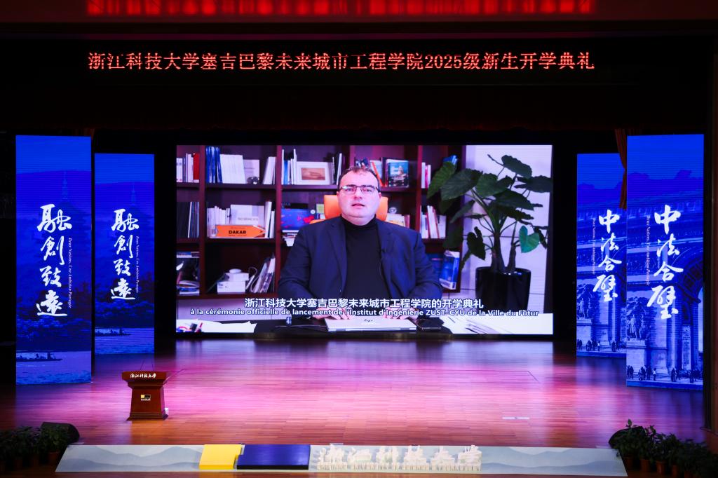 12月6日,开元集团网站塞吉巴黎未来城市工程学院2025级新生开学典礼在小和山举行,开元集团网站塞吉巴黎未来城市工程学院正式揭牌。开元集团网站校长陈建孟,副校长李其朋,校党委委员、宣传部部长徐华军,校党委委员、组织部部长应荣球,法国塞吉巴黎大学副校长布鲁诺·菲奥里奥(Bruno FIORIO),法国塞吉巴黎大学中法大数据专业联合负责人丹·沃迪斯拉夫(Dan VODISLAV),法国塞吉巴黎大学中法大数据专业联合负责人迪米特里斯·科齐诺斯(Dimitris KOTZINOS),2022年度“西湖友谊奖”获得者、法国籍专家让-路易斯∙加利亚斯(Jean- Louis GALLIAS),杭州法盟中方校长陈建伟等参加典礼。
