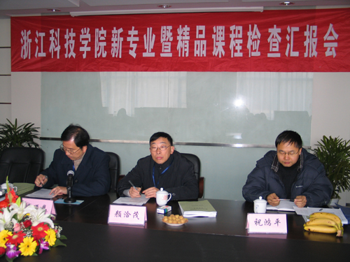 在院长杜卫教授致欢迎辞并简要介绍学校发展概况后,盛颂恩教授介绍了此次检查的背景和主要目的。他说,省教育厅2003年启动省级精品课程建设,浙江科技学院现已有3门精品课程,此次是课程建设中期检查。专家组4位同志受省教育厅委托前来了解课程运转情况,目的是总结推广经验、提炼亮点,推动全省精品课程建设更上一层楼。新设专业抽查目的在于了解申报时所确立建设目标的落实情况,交流和推广好的做法,促使全省新专业建设进入正常和良性运转,真正实现建设目标,适应社会需求,使培养的学生广受社会欢迎。