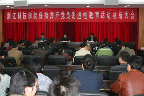 省委先进性教育活动督导组高校二组组长沈森在讲话中指出,浙江科技学院党委在省委、省委教育工委的领导下,根据第二批保持共产党员先进性教育活动的部署和要求,带领广大党员、干部、教职工、学生,结合学校实际,认真扎实地开展了保持共产党员先进性教育活动,进展是顺利的,成效是比较明显的,群众满意率也是比较高的。我们督导组同志对浙江科技学院先进性教育活动留下了非常深刻的印象:一是党委重视,精心组织;二是领导带头,率先垂范;三是营造气氛,形式多样;四是结合实际,边整边改;五是成效比较明显。