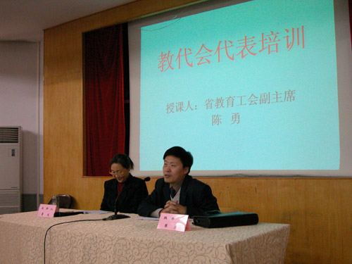 为代表们上课的是省教育工会陈勇副主席。陈勇老师既有丰富的基层工作经验,又有扎实的理论水平。在讲课中,他从教代会的历史沿革、教代会的基本知识、教代会的有关制度等方面,一一进行了阐述,并通过举例加以说明。