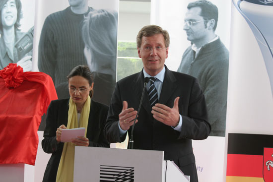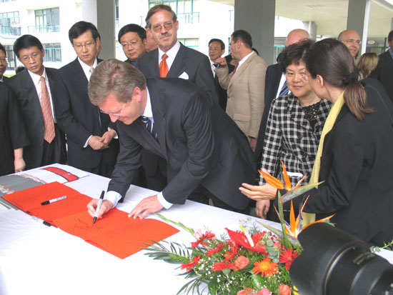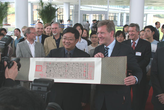 德国下萨克森州州长武尔夫先生(Christian Wulff)、德国驻沪总领事芮悟峰博士(Dr. Wolfgang Röhr)及随团的德国高校、经济界人士三十余人,省教育厅副厅长蒋胜祥、省对外经济贸易合作厅副厅长夏海伟、省外事办公室副主任汪银儿等出席了揭牌仪式。
