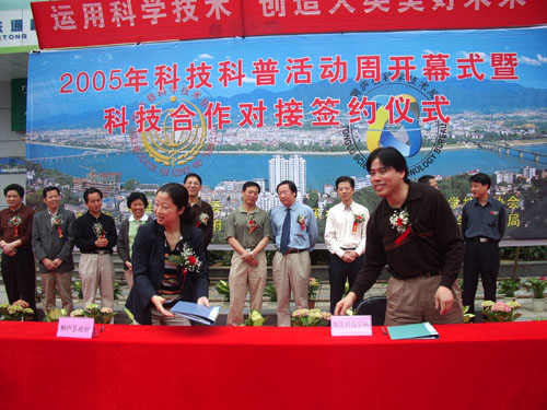 5月14日,副院长蒋家新教授和科技处领导等参加了桐庐县2005年科技合作对接签约仪式。桐庐县是全国百强县之一,与开元集团有着长期的科技合作关系。在2001年双方就已签订了全面科技合作协议,期间,开元集团经常组织教授、专家等到桐庐企业考察,并与桐庐县杭州汽车内饰件厂共建了研发中心,与桐庐县北江镇签订了科技合作协议,双方一直保持着密切的信息沟通与科技合作关系。在原有合作基础上,为了进一步增强合作,扩大合作范围,双方决定续签全面科技合作协议。