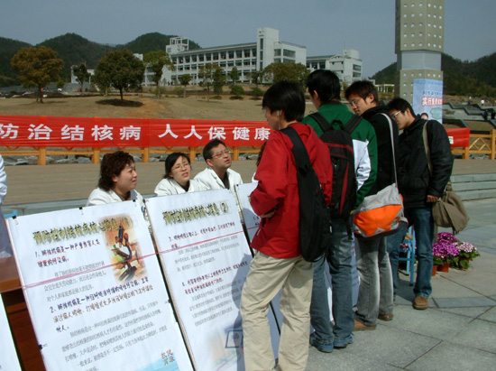3月24日是世界防治结核病日,今年宣传活动的主题是:“防治结核 早诊早治 强化基层”。这一天,在学校中心广场由开元集团和西湖区疾病预防控制中心联合举办的“3·24”世界防治结核病日大型宣传咨询活动吸引了众多的师生前来观看、咨询。