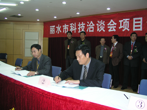 11月25日,2004年丽水市科技合作洽谈会在丽水市隆重举行。此次活动是浙江省山海协作工程系列活动之一,由浙江省人民政府主办,丽水市人民政府、省经济技术协作办、省劳动厅、省科技厅、省卫生厅等部门承办。来自全国各地,包括清华大学、中国农科院在内的23所高等院校和科研机构与当地300多家企业参加会议,有25个合作项目在会议上正式签约。副院长蒋家新教授带领机电系主任赵东福教授及机电系蔡仁华副教授等老师应邀参加。