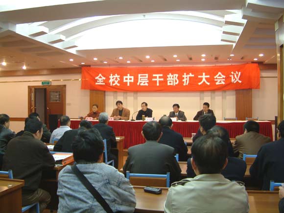 11月26日,学校在小和山校区召开中层干部扩大会议。全校中层以上干部,教授,民主党派负责人及教代会代表团团长等参加了会议。会议由校党委副书记胡浙平主持。