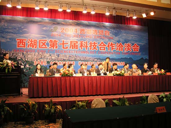 2004西湖博览会暨西湖区第七届科技合作洽谈会于2004年10月29日在世贸中心举行。杭州市人民政府孙景淼副市长、西湖区人民政府许迈永区长、西湖区科技局林旭阳局长等领导出席了开幕式。我院副院长蒋家新教授作为特邀嘉宾在主席台就座。与西湖区进行科技合作的十多家高校和科研院所以及西湖区的几十家企业参加了洽谈会。信电系蒋惠忠副教授和科技处有关老师应邀参加了此次活动。会上,信电系蒋惠忠副教授就自动控制系统开发技术作了科技信息发布。