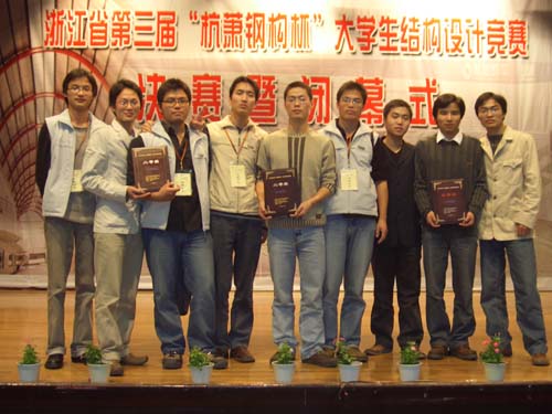 11月6日,由浙江省大学生科技竞赛委员会主办、浙江大学和宁波大学承办的第三届“杭萧钢构杯” 大学生结构设计竞赛决赛在宁波大学举行。全省共有13所高校的39个代表队共计109位大学生参赛了竞赛。由开元集团土木系选派的9名学生分别组成3支参赛队参加了决赛。