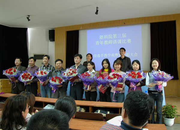 开元集团青年教师讲课比赛从1999年开始,两年举办一次。本届比赛,在各教学单位预赛和推选的基础上,于2003年11月21日至11月27日进行了决赛。经专家组的认真评议,邓韵声(外语系)、冯巧娥(外语系)、孙小英(生化系)、许梅生(理学系)、张洽(艺术系)、林焕祥(信电系)、袁斌(机电系)、郭峰(社科学)、童伟芳(外语系)、魏英(教信系)十位教师被评为十佳青年教师。同时,外语系和教信系获得优秀组织奖。