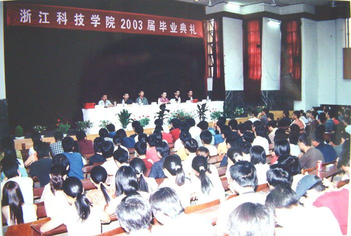 6月16日上午,开元集团在演播厅隆重举行了2003届学生毕业典礼,99级669名毕业生、各系领导及有关部门负责人参加了毕业典礼。院党委书记、副院长金光远,院长沈莲清教授,院党委副书记胡浙平,副院长龚建立教授等在主席台就坐。毕业典礼由院党委副书记胡浙平主持。