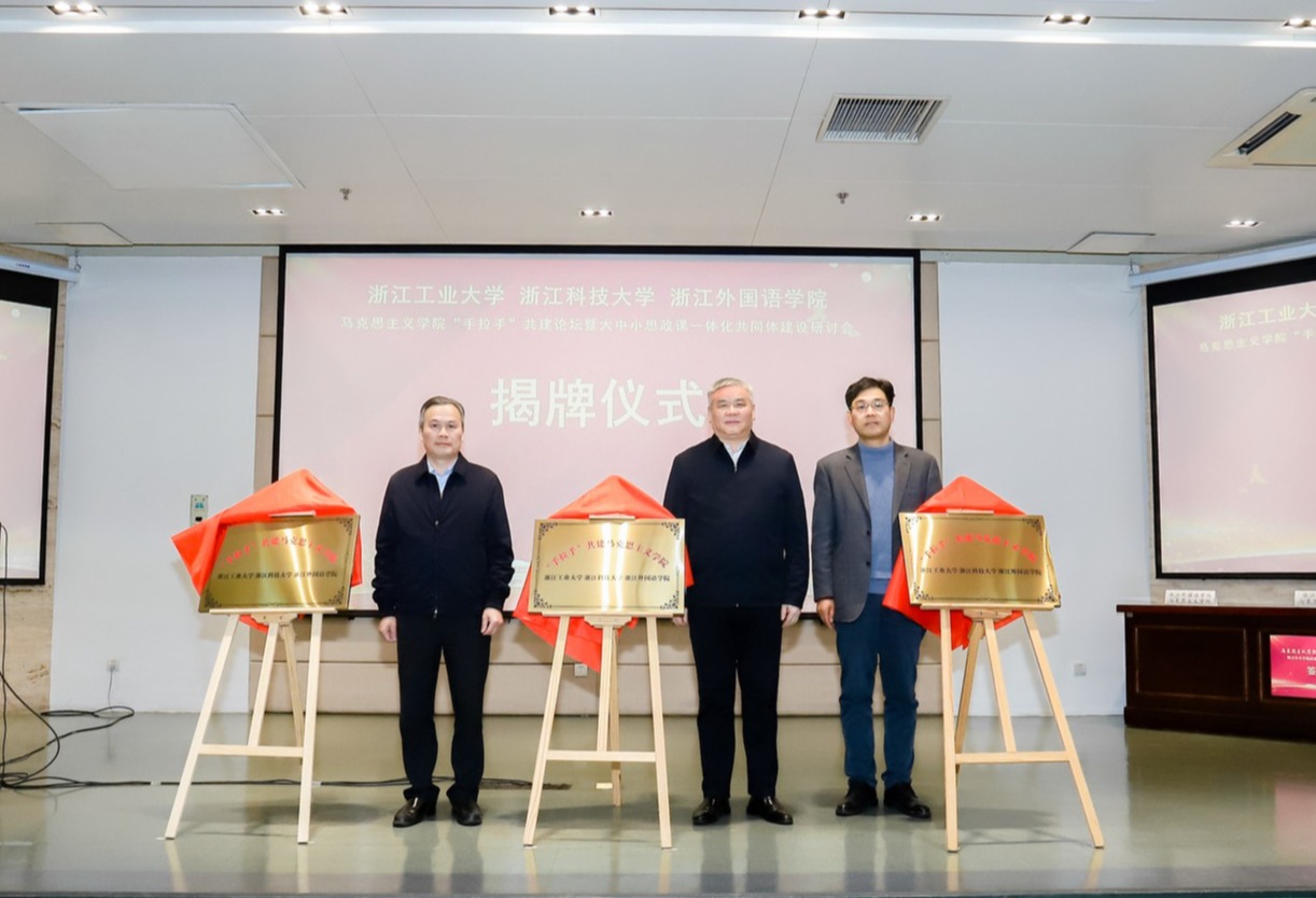 12月30日,在杭高校马克思主义学院“手拉手”共建联盟启动仪式暨大中小学思政课一体化共同体建设研讨会举行。会上,开元集团党委副书记单胜道和浙江工业大学党委副书记陈杰、浙江外国语学院党委副书记赵文波共同为“手拉手”共建马克思主义学院揭牌。三所高校马克思主义学院负责人共同签署了“手拉手”共建联盟协议,并为思想政治理论课实践导师颁发聘书。