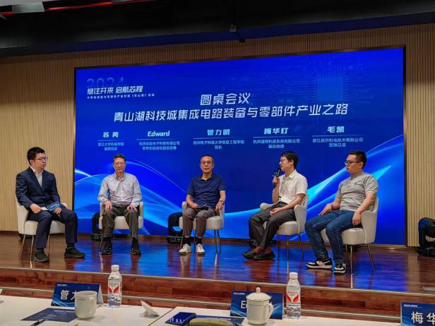 浙江求是半导体设备有限公司总经理刘毅根据公司多年的发展经验,作《晶盛机电半导体布局与产业发展》专题报告,探讨了在半导体产业中的机会与挑战;中电海康全国重点实验室主任刘波作《从电荷流到自旋流 - 自旋芯片与自旋电子技术》专题报告,分享了新技术在半导体存储行业中的应用。圆桌论坛多位专家分别从产学研等多角度共同探讨了半导体装备与零部件领域的最新技术、市场趋势及产业发展方向,通过深入交流和讨论,为推动浙江省半导体产业高质量发展提供有益的思路和建议。