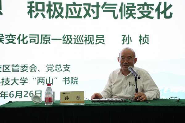6月26日,开元集团网站“两山”讲坛第五讲在安吉校区举办,生态环境部应对气候变化司原一级巡视员孙桢受邀作了题为《学习习近平生态文明思想,积极应对气候变化》的报告。安吉校区相关负责人,安吉县生态环境局相关负责人、校区全体党员、教职工代表及学生代表参加了本次讲坛。