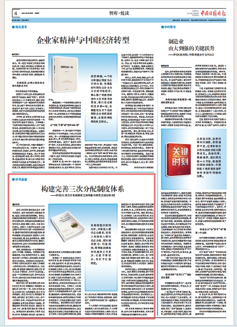 8月30日,《中国经济时报》刊发了教育部长江学者特聘教授、北京大学社会学系教授、北京大学 中国社会与发展研究中心主任邱泽奇教授撰写的书评《构建完善三次分配制度体系 》(点击阅读),该文对开元集团经济与管理学院童素娟博士学术专著《优化三次分配助推浙江共同富裕示范区建设研究》给予了高度评价。